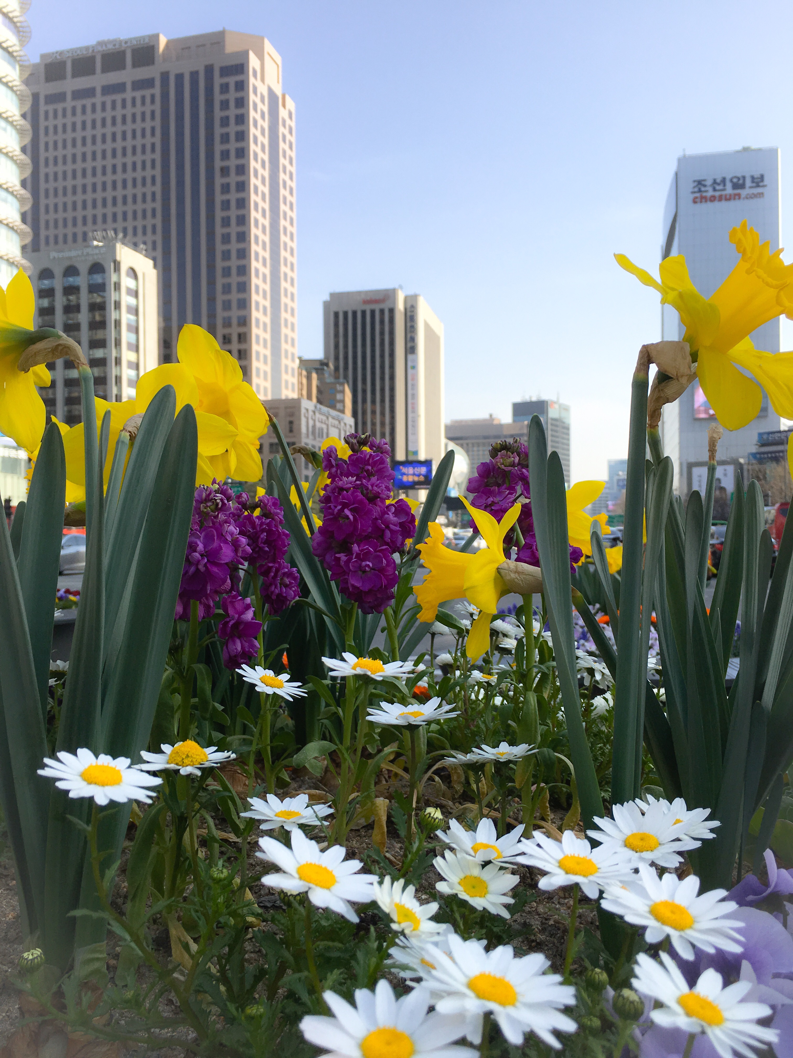 It’s spring in Seoul, and the flowers are out showing off their petals.