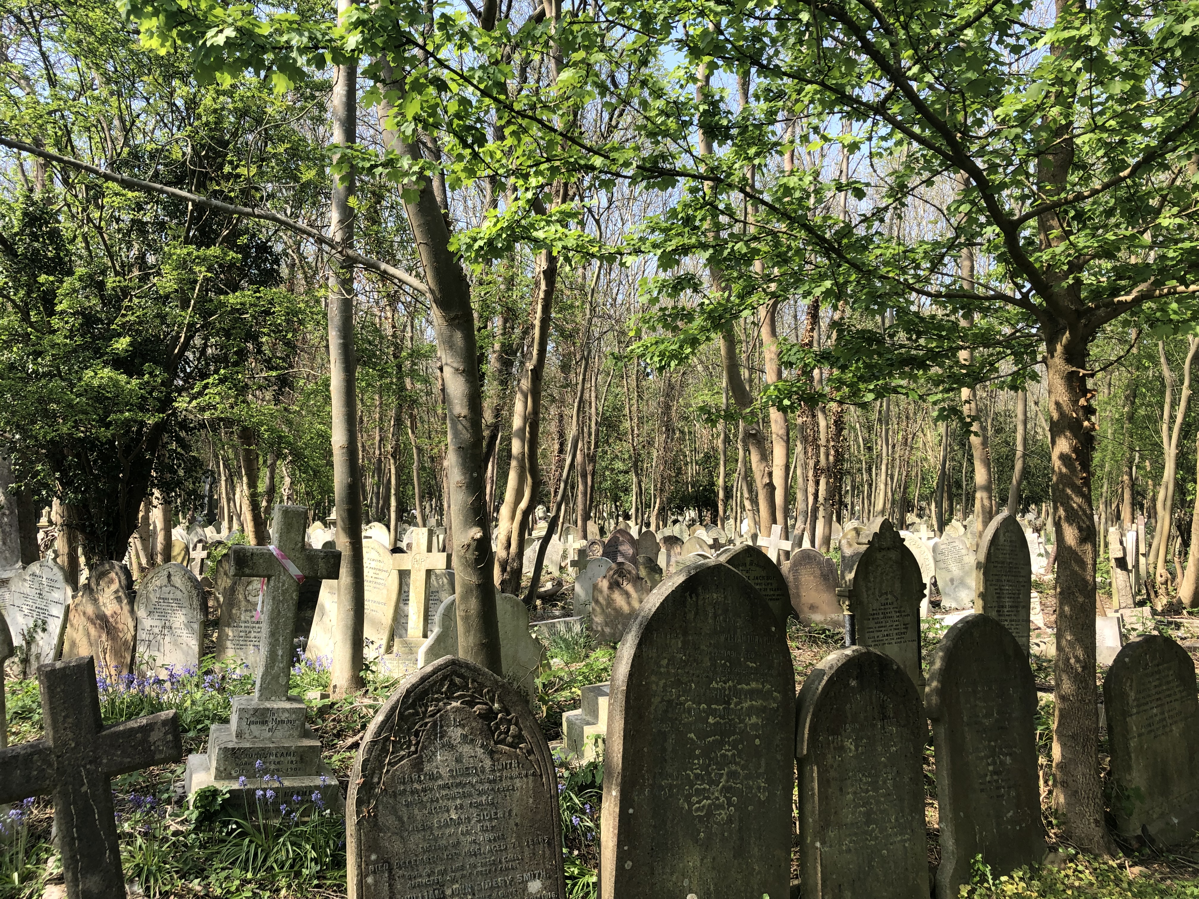 Walking through the crowded tombstones in Highgate Cemetery, I am reminded that death comes to us all. Some of those buried here lived long and historically memorable lives, while others died before they could spread their wings–forever young. Where do our memories go after death, those unique experiences that make up the core of who we are? Are they released into the atmosphere or buried with our bodies in the earth? Do cemeteries harbour memories of the dead? My mother believes in the rapture, when the dead are released from the bowels of the earth to join the living as they ascend into the heavens. I want to believe there is a rapture for memory, that our experience of this life remains intact, that death doesn’t erase, but instead preserves in its dark cocoon those moments that made us human, waiting to be released. There are wildflowers in bloom on the graves of the long forgotten, bluebells, Queen Anne’s lace, and dandelions. The wind ripples through them, an audience of colour, and they nod their knowing heads as though listening, enraptured by the whisper of leaves in the canopy overhead.